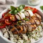 At its heart, this recipe is about bringing bright, joyful flavors to your table with minimal stress. These Grilled Chicken Caprese Bowls are the ultimate proof that a fantastic dinner doesn’t require complicated techniques or a mountain of ingredients—just a few good ones, treated with care. They’re the perfect answer for cheap dinners for a family, effortless summer meal ideas, or a make-ahead lunch that actually excites you.